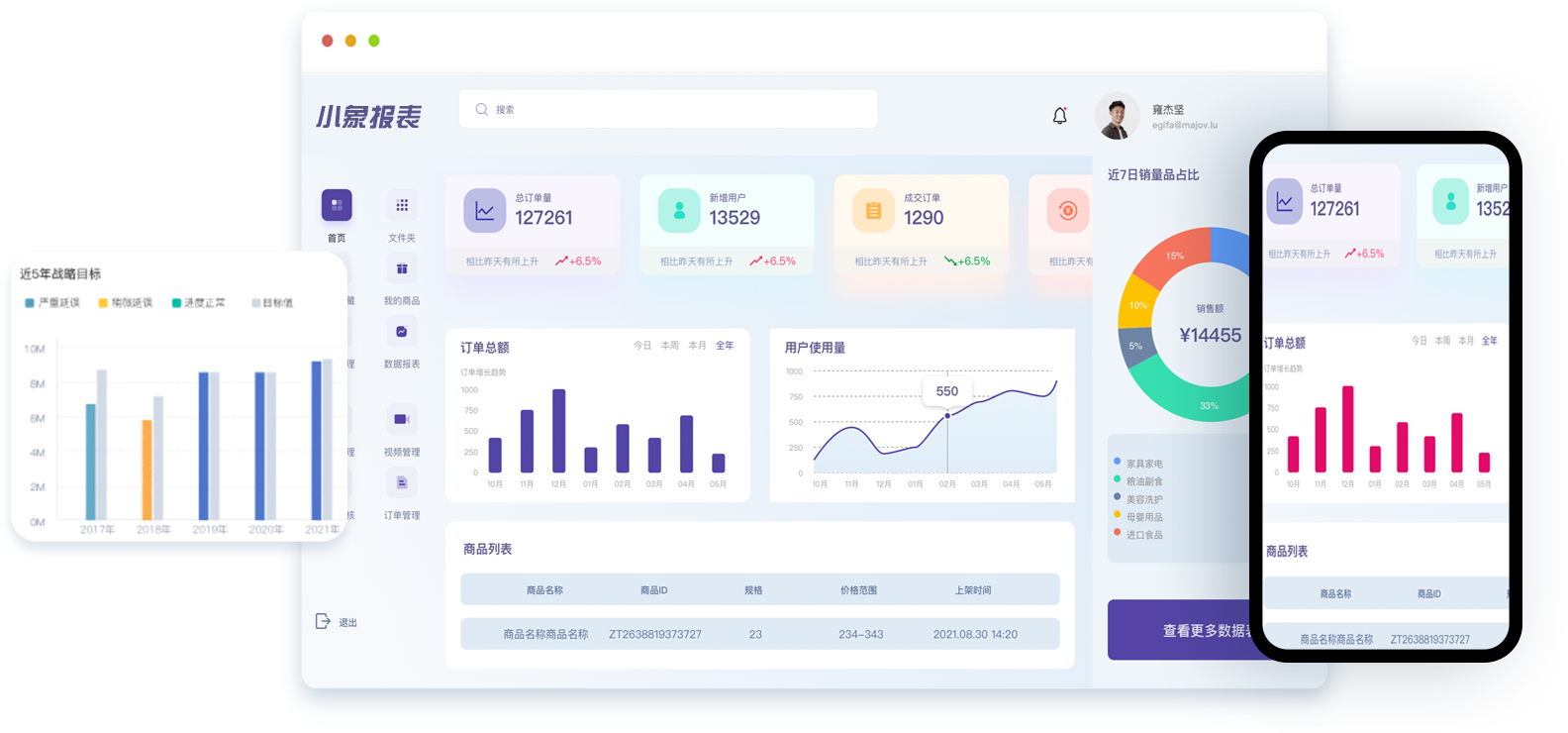 小象报表通过各种常见的图表形象标示企业运行的关键指标,只管的检测企业运营情况,并可以对异常关键指标预警和挖掘分析。